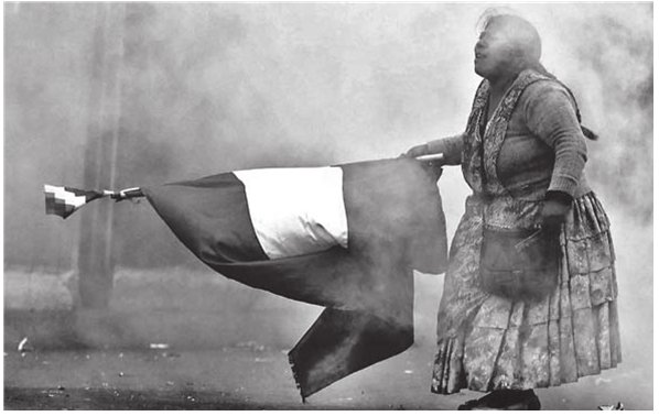 Женщина с флагом – сторонница законного президента Эво Моралеса – во время противостояния между восставшими военными и силами социалистического правительства в 2019 г.