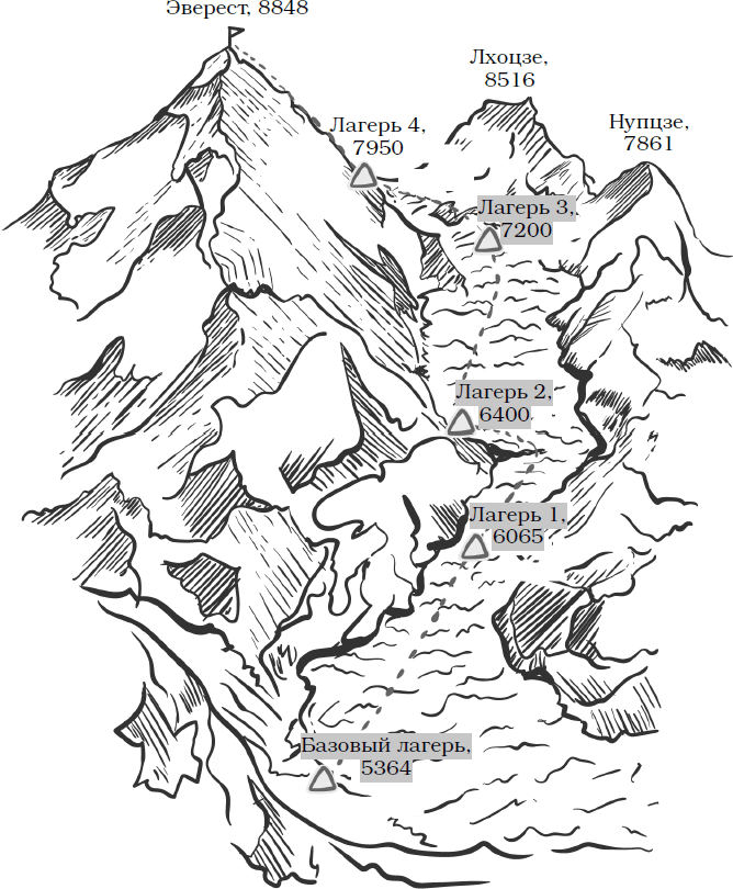 Схема классического восхождения на Эверест и Лхоцзе