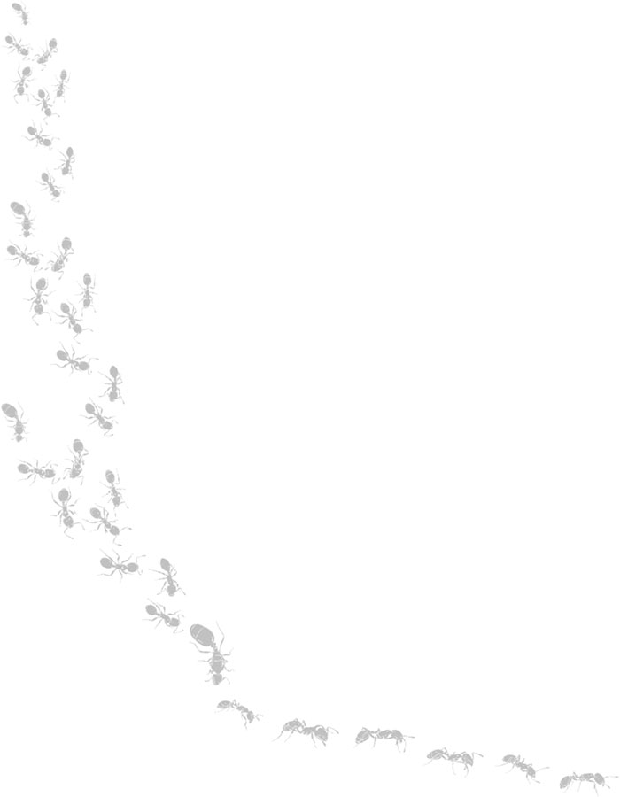 Особенности жизненного цикла и кастовой системы муравьёв обусловлены тем, что колония – это семья. У большинства видов связи между отдельными особями настолько плотные, что колонию можно с полным правом назвать суперорганизмом. Если вы посмотрите на колонию с расстояния в пару метров и позволите изображению слегка расфокусироваться, тела отдельных муравьёв сольются в один огромный, расплывчатый организм. Королева является центром этой сущности как в наследственном, так и в физиологическом смысле. Она отвечает за воспроизводство группы – как отдельных особей, так и новых суперорганизмов. Таким образом, обычно генеалогию колонии прослеживают от королевы к дочери-королеве, от неё – к внучке-королеве и т. д. (потенциально до бесконечности). Рабочие, стерильные сёстры каждого поколения девственных королев, функционируют лишь как придатки. Это рот, кишечник, глаза, всё туловище суперорганизма, в центре которого находятся яичники, воплощённые королевой. И хотя верно то, что рабочие принимают подавляющее большинство мгновенных решений, их действия имеют единственную конечную цель – позволить своей матери производить новых королев. С помощью сестёр-королев они распространяют собственные гены.