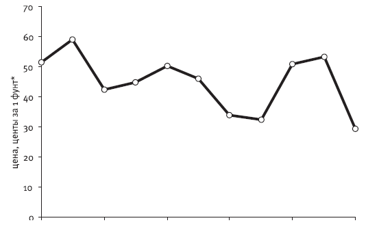 Рис. 3.5. Динамика среднегодовых цен на медь на Лондонской бирже в 1965–1975 гг.