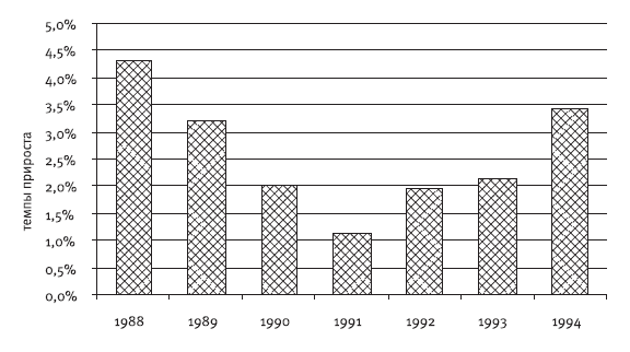 Рис. 3.9. Темпы прироста мировой экономики в 1988–1994 гг.