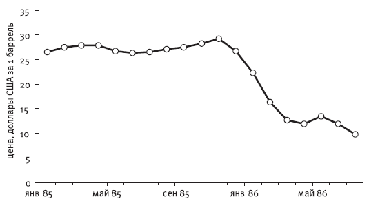 В 1986 г. цены снижаются до беспрецедентно низкого для предшествующего десятилетия уровня – менее 10 долл. за баррель в текущих ценах[209]209
