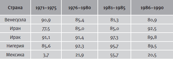 Таблица 3.2. Доля экспорта нефти в суммарном экспорте некоторых стран-нефтеэкспортеров в 1971–1990 гг. Средние значения по пятилетиям (%)