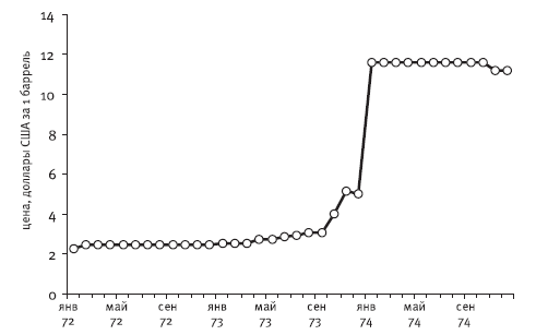 Рис. 3.13. Динамика среднемесячных цен на нефть на мировом рынке в 1972–1974 гг.