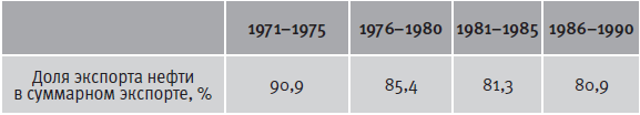 Таблица 3.10. Доля экспорта нефти в суммарном экспорте Венесуэлы в 1971–1990 гг. (средние значения по пятилетиям)