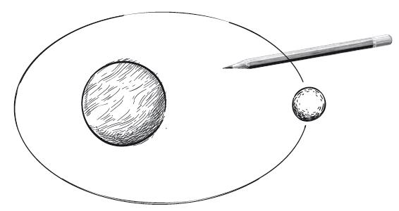 – Это Солнце. – Потом добавил вокруг него овал. – Это орбита Меркурия. – Солнце внутри орбиты оказалось смещено влево.