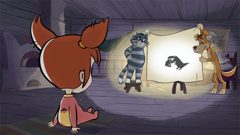 Шарик дунул в рог – из него вылетело что-то яркое, ударилось о стену и упало рядом с Матроскиным.