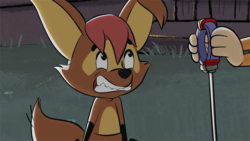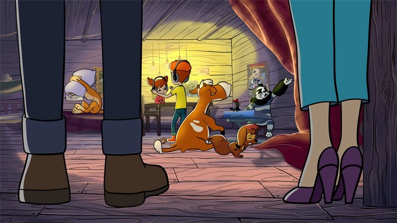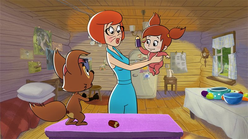 Дядя Фёдор с Шариком скатились по железному жёлобу и оказались в небольшом помещении. На стенах были развешаны чертежи. Кругом лежали отвёртки, болтики, гайки. А в центре комнаты Вера Павловна крепко обнимала Таму-Таму. Вид у той был озадаченный. В лапах у неё был большой рюкзак. Она явно собиралась бежать.