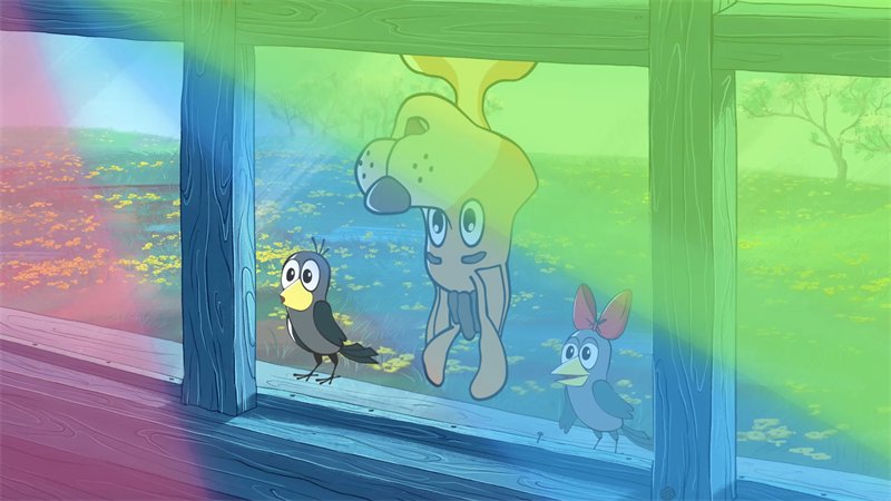 Шарик по природе своей был охотничьей собакой и потому историей этой очень заинтересовался. Да так, что даже забыл про конфету, которую съесть собирался. Этим воспользовался Галчонок. Он выхватил сладость из лап Шарика и вылетел в окно.