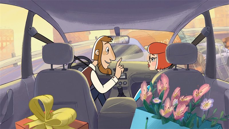 Тем временем в городе мама и папа привычно стояли в пробке. Из магнитолы автомобиля негромко звучал лиричный блюз. Папе эта мелодия была по душе: он покачивал головой в такт, похлопывал по рулю и даже подпевал.