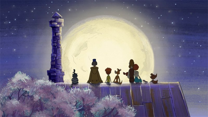 Двор был залит лунным светом. Все забрались на конёк крыши и завороженно смотрели на огромную Луну.