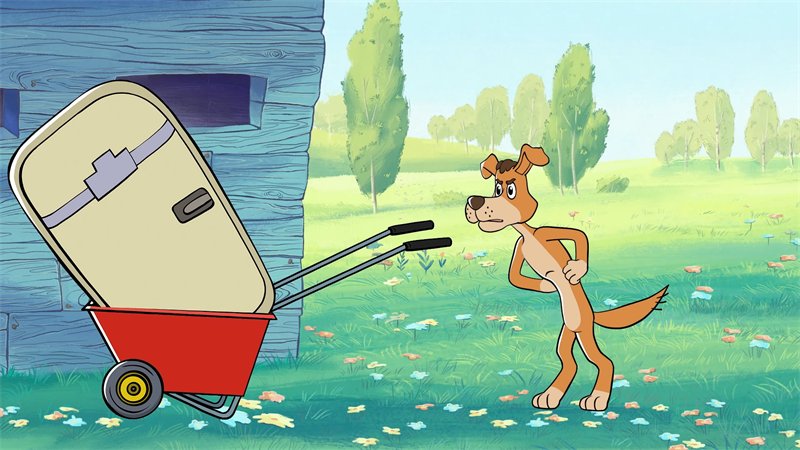 Сунув банку обратно в холодильник, Шарик направился к сараю. Шел он, вытянув перед собой лапы, и по-прежнему с закрытыми глазами, поэтому налетел на аккуратно сложенную друзьями поленницу – дрова разлетелись в разные стороны. Потом пёс вошёл в коровник и привёз оттуда на тачке старый холодильник.