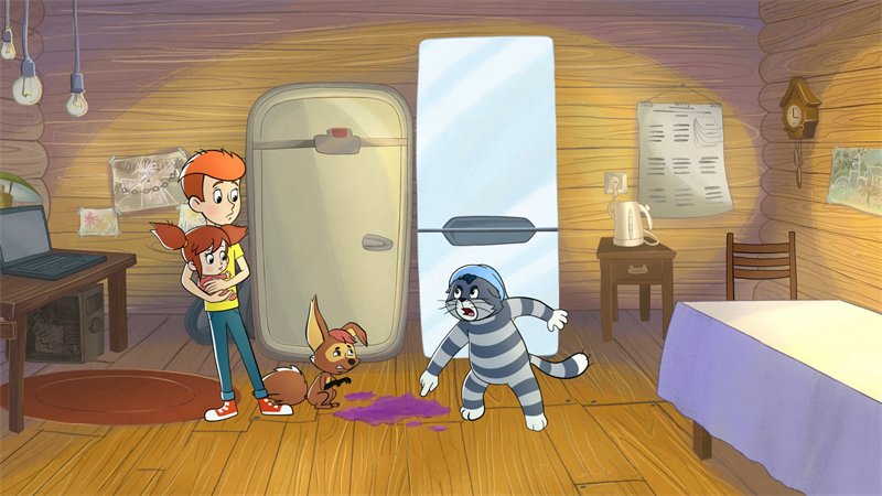 Когда все проснулись, и холодильник, и пятно, и дрова снова обнаружились на прежних местах, будто и не было никакой уборки. Матроскин заторможенно взял тряпку и стал оттирать пол. Работая, он обречённо бормотал себе под нос:
