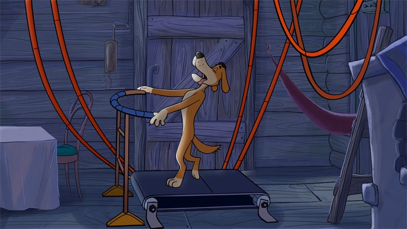 Наступила ночь. Все в доме спали. В луче лунного света с лавки поднялся Шарик. Не открывая глаз, он медленно вытянул задние лапы и встал… на беговую дорожку!