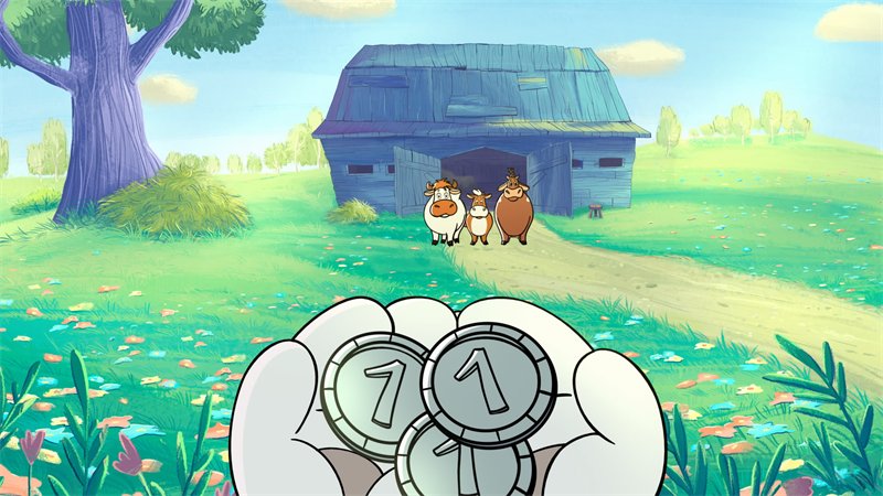 А пока он на коров любовался, подлетел Галчонок – цап! – схватил одну монетку у него из лап и улетел.