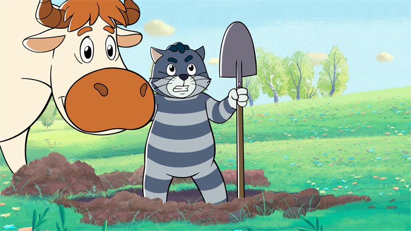 Выбежал Матроскин из коровника с лопатой и начал лихорадочно землю рыть. Это он убежище решил строить, чтобы всё, что ему дорого, там спрятать.