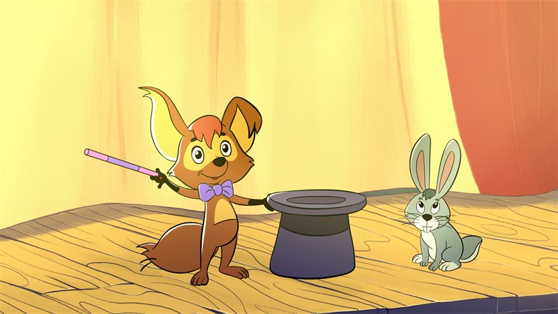 Балансировал Шарик на колесе, балансировал – и не заметил, как наехал на край занавеса. Ткань запуталась, потянулась, – и хоть и пытался Матроскин её удержать, упал занавес на Шарика, скрыв его с головой. Еле удержался Дядя Фёдор на стремянке, а потом спрыгнул с неё и побежал Шарика спасать, который теперь вслепую по сцене на колесе носился.