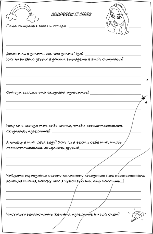 Вы увидите, что со временем чувство невнятного стыда преобразуется в несколько отдельных ощущений, которые вы будете распознавать и классифицировать, легко от них избавляться, работая по этому плану.