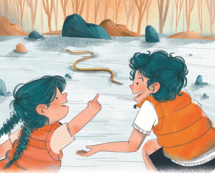 В другой раз ужа на берегу разглядела Поля. Змея сначала спряталась в небольшой норе под деревом, но дети не оставили её в покое, ей пришлось спасаться в воде. Однако вместо того, чтобы поскорее уплыть, уж отправился на охоту. Он подныривал под прибрежные камни, переворачивался на спину, доверчиво выставляя на обозрение полосатое жёлтое пузо, и что-то собирал на дне. Может, этот хитрец просто знал, что, пока рядом люди, ни одна хищная птица не посмеет напасть на него. Так что он просто воспользовался случаем, чтобы всласть поохотиться и не стать добычей для других. Коля всегда радовался, если удавалось увидеть в природе какое-то животное, которое не встретишь просто так на городской улице… Хороший тогда получился поход!