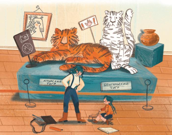 – Наверное, Тамара Николаевна увела всех делать наброски в какой-то дальний зал или даже в соседний корпус. Давай пока сами поставим мольберт и порисуем вот этих тигров, – предложила мама.
