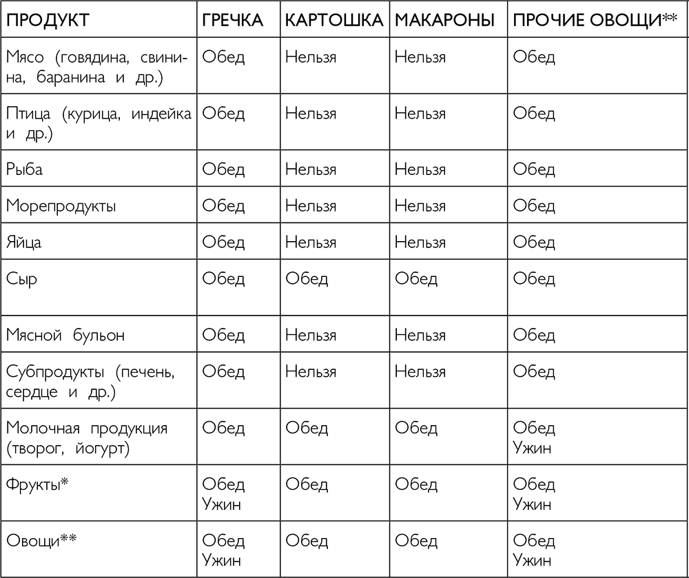 Все остальные сочетания продуктов разрешены. Но не забывайте, что мы худеем и во всем должна быть мера. Не стоит увлекаться сочетанием тяжелых продуктов (например, избегайте блюд типа баклажанов, фаршированных мясом, грибами, рисом, под сыром).