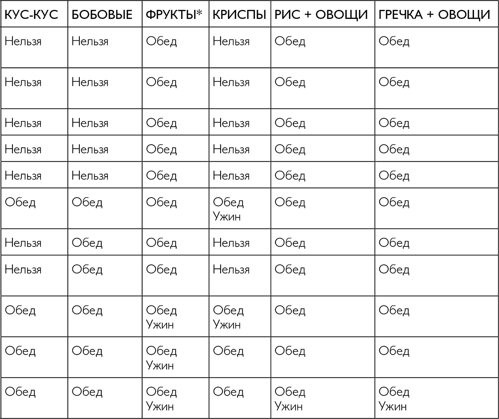 Между собой можно сочетать только продукты из одного варианта ужина.
