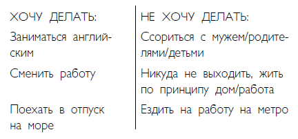 А теперь зачеркните список «Не хочу». Вот так: