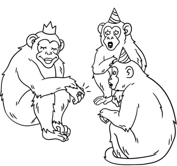 Обезьяна распространила в Инстастае фото, где она в ресторане с тремя подружками в новом кольце отмечает день рождения.