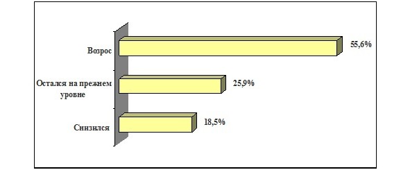 Уровень коммуникационной активности в компаниях, по оценкам экспертов, вырос (Рис. 7). В целом участники исследования разошлись в оценках степени тяжести экономического кризиса: высказывались диаметрально противоположные мнения. Один из экспертов назвал тему «слишком раздутой»: «Наша коммуникационная стратегия не претерпела никаких изменений из-за кризиса, как и бизнес компании в целом». Другой признался в том, что стояла задача «выжить и сохранить не просто компанию, а сектор».