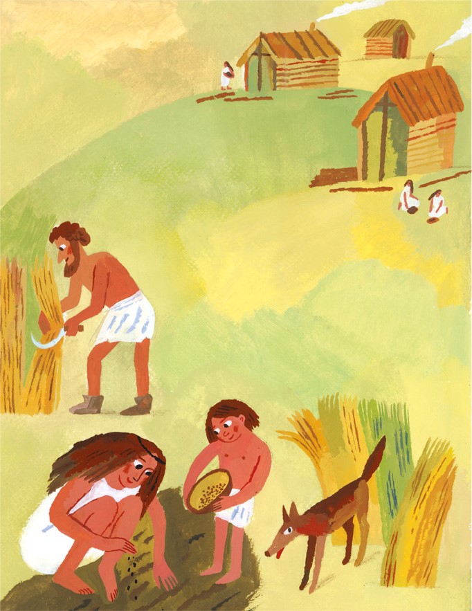 Тысячелетиями первобытные племена переходили с места на место, охотясь и собирая съедобные растения. Но около 12 000 лет назад всё поменялось: древние люди увидели, что случайно упавшие в землю семена дают всходы, а приведённых с охоты животных можно приручить и они принесут потомство. Когда человек научился разводить скот и обрабатывать землю, ему больше не надо было кочевать в поисках пищи.