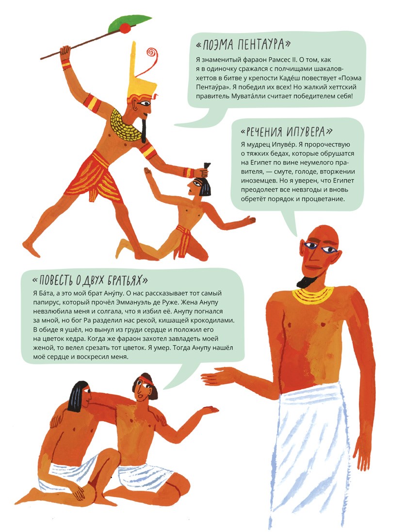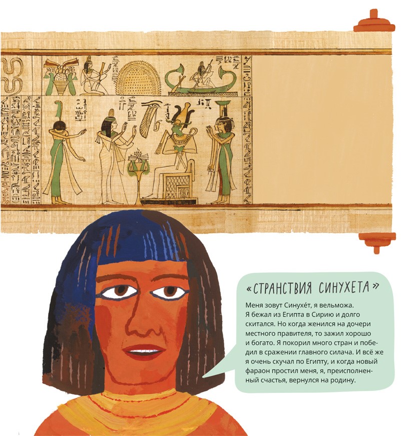 Египтяне придумали книжки (точнее папирусы) с картинками. Впервые иллюстрации украсили «Книгу мёртвых» – так называют сборники магических текстов, которые клали умершим в саркофаг или погребальную камеру. О чём повествует текст, о том же рассказывают и картинки.