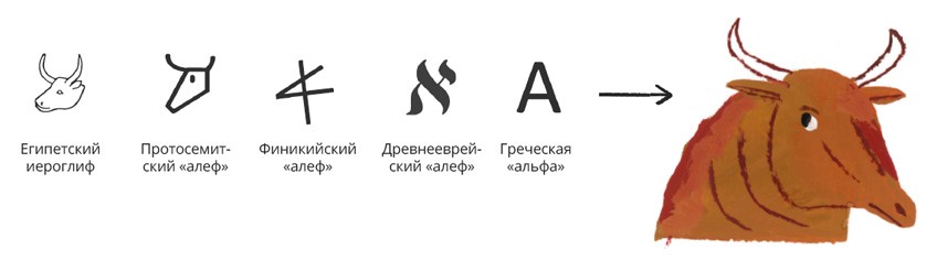 Если вы мысленно перевернёте букву «А» вверх ногами, то опознаете в ней рогатую голову быка.