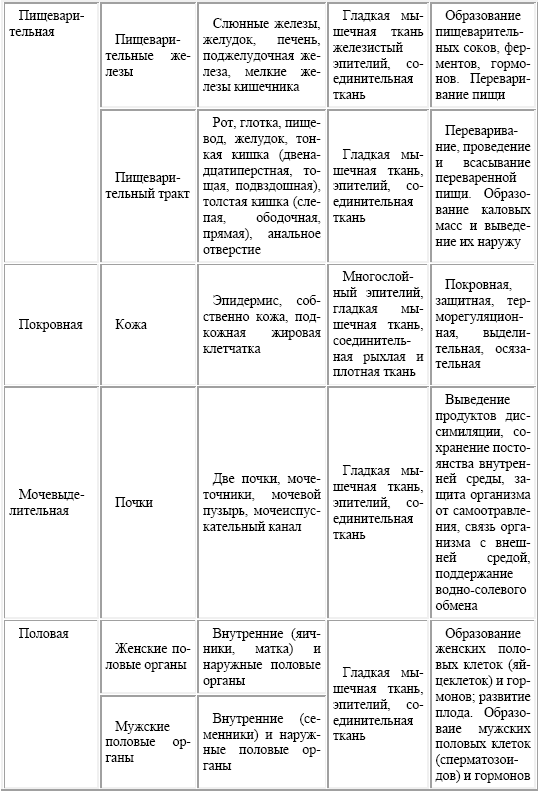 Системы органов. Органы анатомически и функционально объединяются в системы органов, т. е. в группы органов, связанных друг с другом анатомически, имеющих общий план строения, единство происхождения и выполняющих одну общую функцию. Таким образом, можно выделить системы органов, выполняющих общие функции в организме.