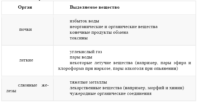 • экскреторная функция: выделение из организма конечных продуктов азотистого обмена, чужеродных веществ, избытка органических веществ (глюкоза, аминокислоты и др.).