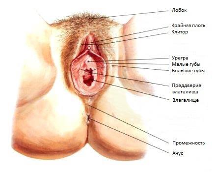 Наружные женские половые органы, включая лобок, большие и малые половые губы, клитор, преддверие и отверстие влагалища, объединяют термином "вульва".
