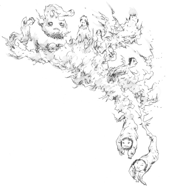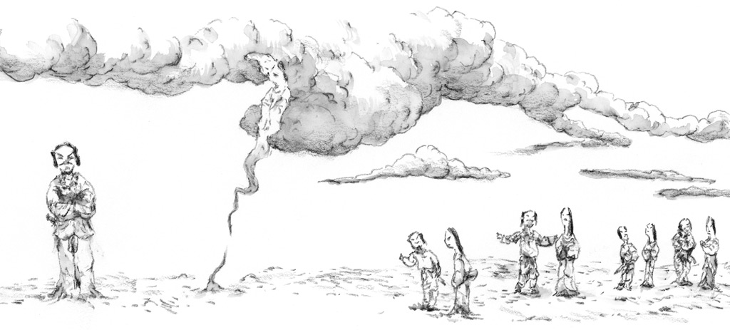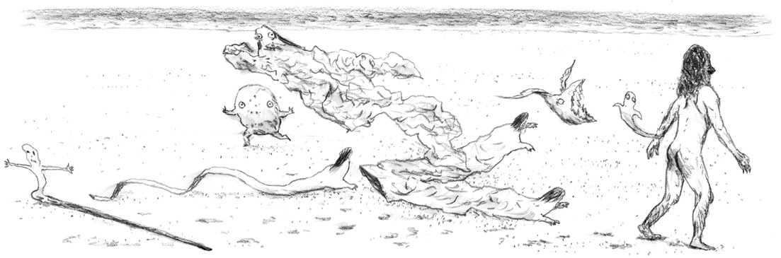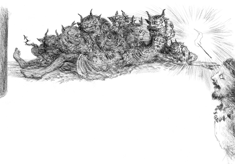 Тут и там в этом погибающем мире закопошились злые боги. Их голоса, подобные жужжанию множества роящихся мух, наполнили все вокруг, и беды, что несут с собой злые духи, распространились по миру.