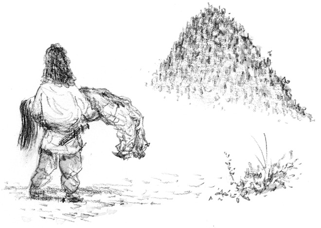 Идзанаки тут же вытащил из-за пояса меч и, не останавливаясь, начал размахивать им у себя за спиной. И вот, наконец, показался холм, что на краю Страны Мрака.