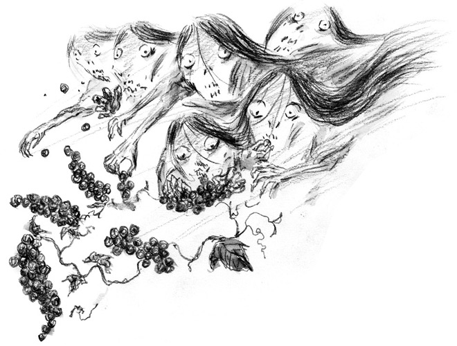 Фурии добежали до зарослей винограда и, чавкая, стали пожирать сладкие ягоды.