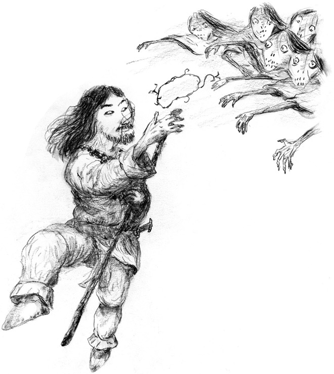 На бегу Идзанаки мельком оглянулся и увидел, что его преследует толпа безобразных фурий. Фурии – прислужницы в стране мертвых, они зовутся Страшилищами Мрака.