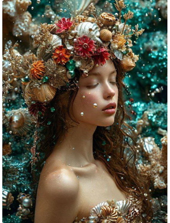В глубинах синего океана, где свет пробивался сквозь толщу воды, жила прекрасная девушка по имени Ная. Она была Душой Воды, и её волосы искрились, как солнечные лучи, отражающиеся на поверхности моря. Каждый день Ная погружалась в свои заботы о подводном царстве, где жизнь бурлила и пульсировала в ритме океанских волн.