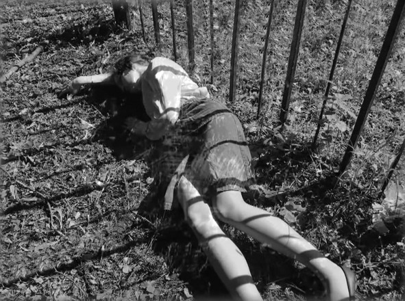 Несколько минут спустя она в крови лежала у его ног. Он наклонился ниже, чтобы посмотреть ей в лицо, которое являло собой сплошное кровавое месиво. В этот момент в ближайшем окне зажёгся свет, осветив тело и вещи убитой. Убийца взял сумку, зонтик и пошёл в сторону дороги. Когда оглянулся, то увидел, что свет в окне погас, но возвращаться не стал.