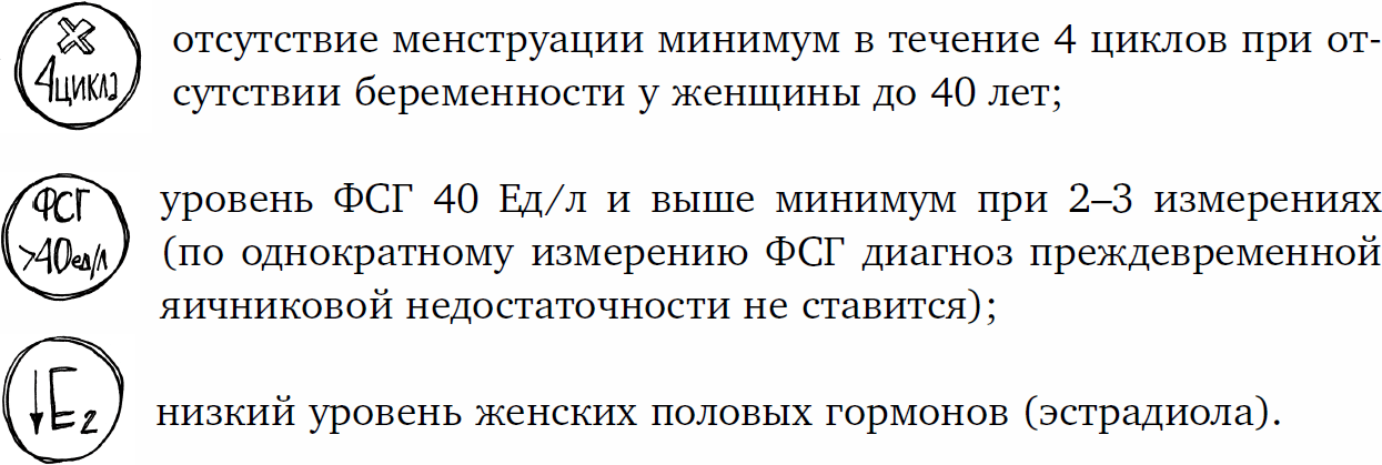 Основными критериями постановки диагноза преждевременной яичниковой недостаточности являются: