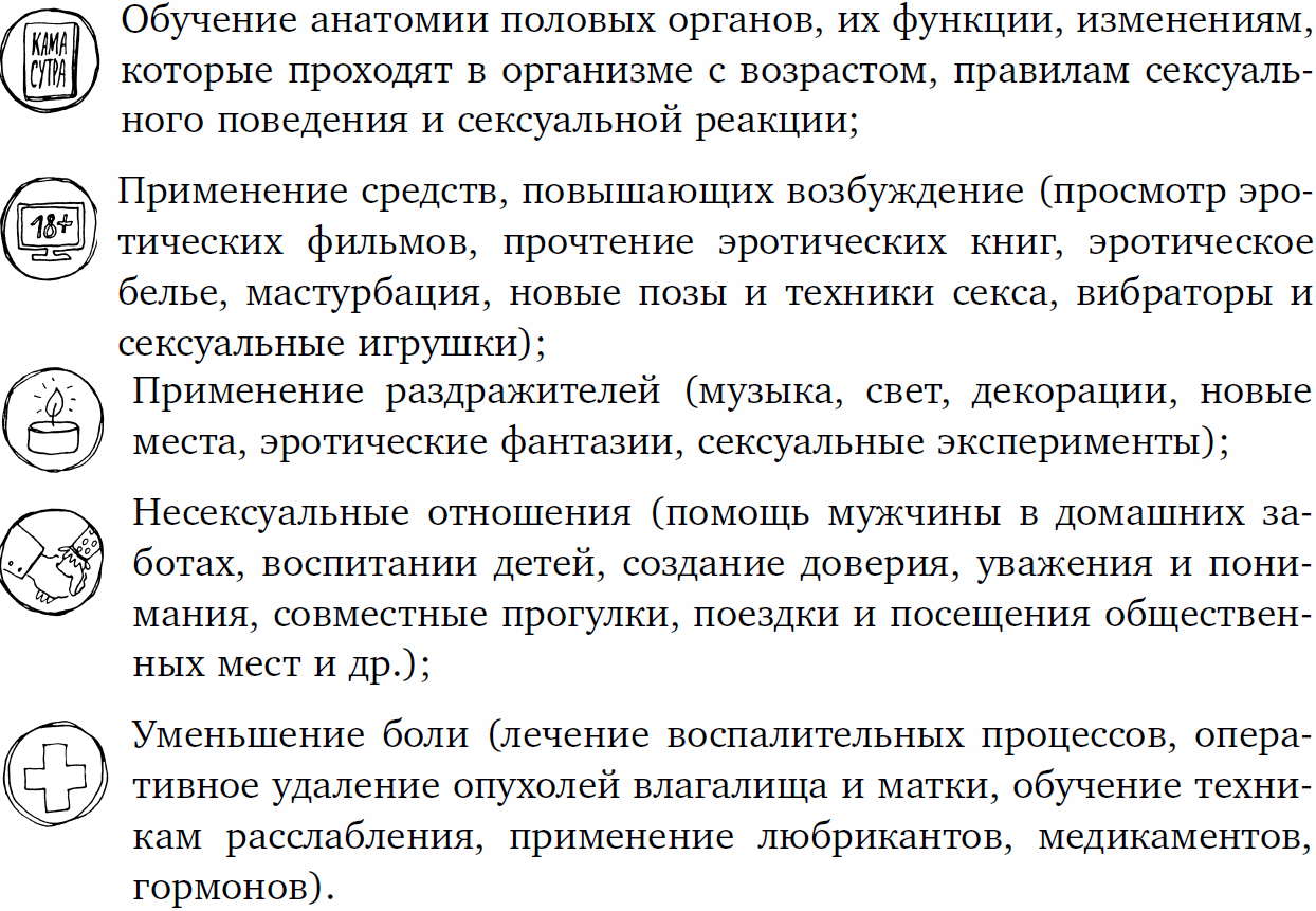 В большинстве случаев женские сексуальные расстройства не требуют медикаментозного или другого вида лечения. Объяснение женщине и ее партнеру причины возникновения таких расстройств, обучение технике секса, устранение психологических причин помогают в решении проблемы в большинстве случаев сексуальных расстройств.