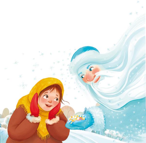 Старше стал Морозец, белые брови не скроешь под шапкой, белые усы не спрячешь – всё равно приходил зимой и дарил девушкам серебряные бусы и красивые снежинки.