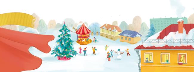 Прохожий подпрыгнул от радости, взял посох, стукнул им три раза о землю, перекувырнулся и оказался… Дедом Морозом в красной шубе с белой каймой и высокой шапке со снежинками. Потом он подхватил со скамейки мешок и важно зашагал к ёлке на площади.