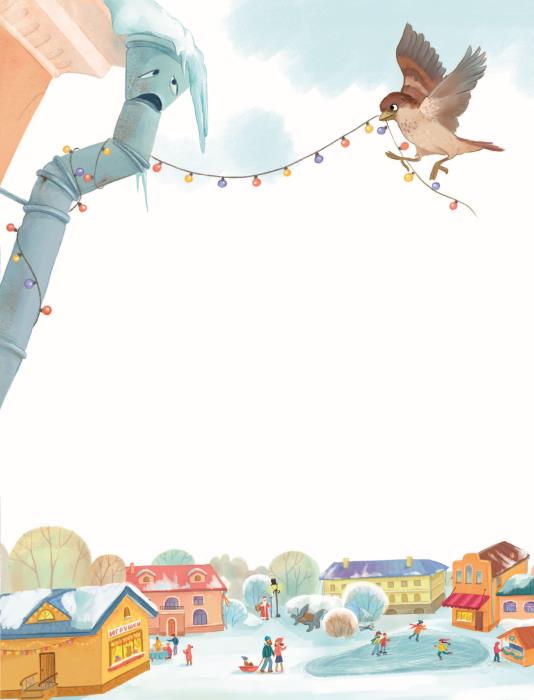 В канун Нового года водосточная труба простыла. Она чихала сосульками и кашляла хриплым северным ветром. Воробей, живущий под аптечным козырьком, прописал ей гирлянды: