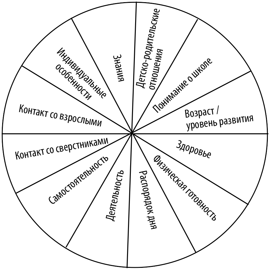 Давайте исходя из этого и начнем. Получается, у нас формируется такое индивидуальное колесо подготовки ребенка к школе.