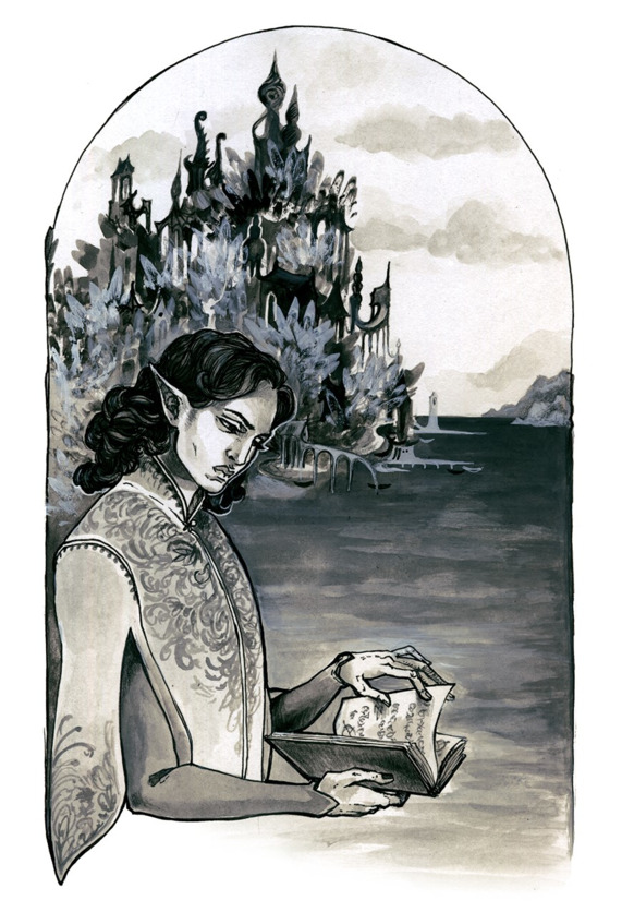 Сама же башня и ее сады оплетали высокий утес и поднимались зигзагом по отвесному склону. На первом уровне вход был открыт, но дальше приветливые зеленые изгороди и каплеобразные беседки с тончайшими колоннами постепенно перерастали в высокие неприступные стены.