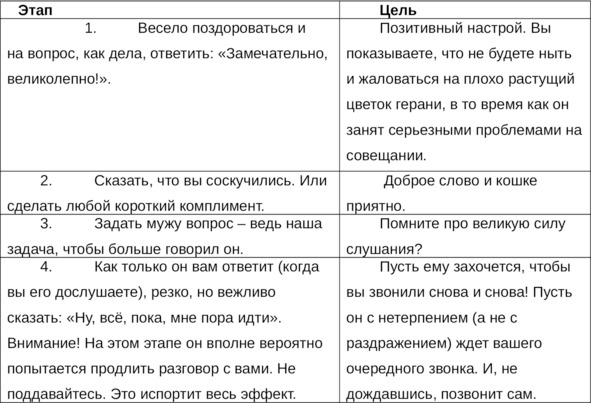 Высший пилотаж телефонного разговора с мужем предполагает наличие следующих этапов.