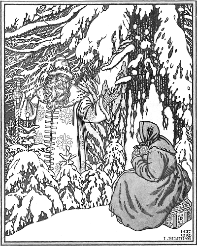 И.Я. Билибин. Иллюстрация к сказке «Морозко». Морозко и падчерица